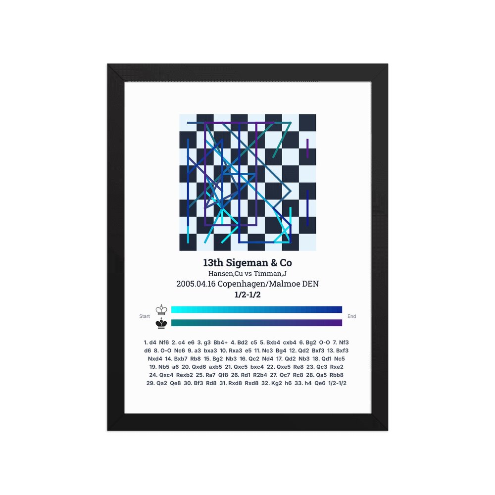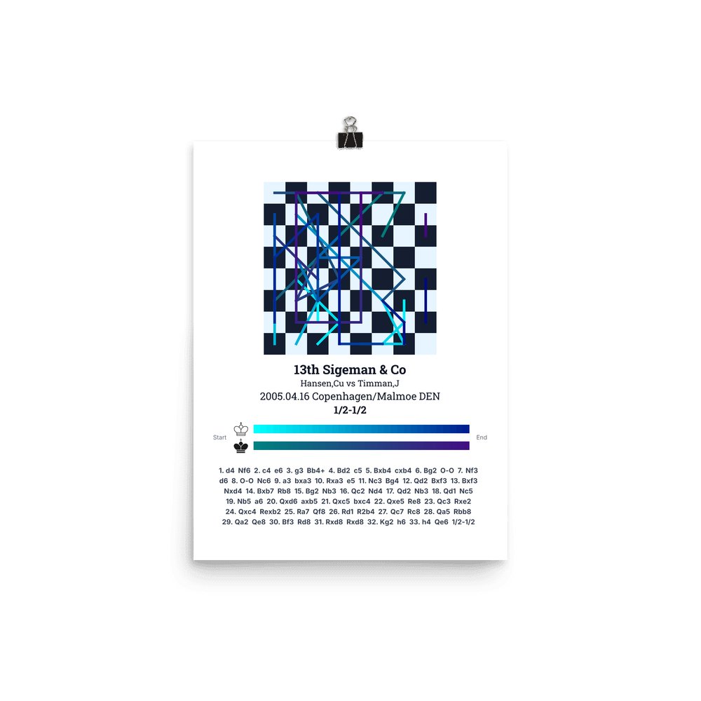 Museum-quality poster on thick, durable matte paper. A sharp, clean look for any chess visualisation.