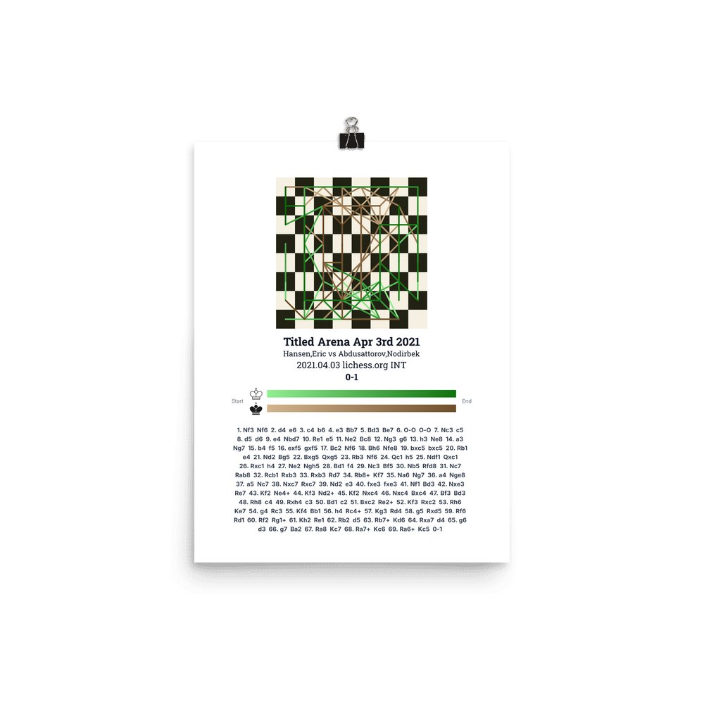 Museum-quality poster on thick, durable matte paper. A sharp, clean look for any chess visualisation.