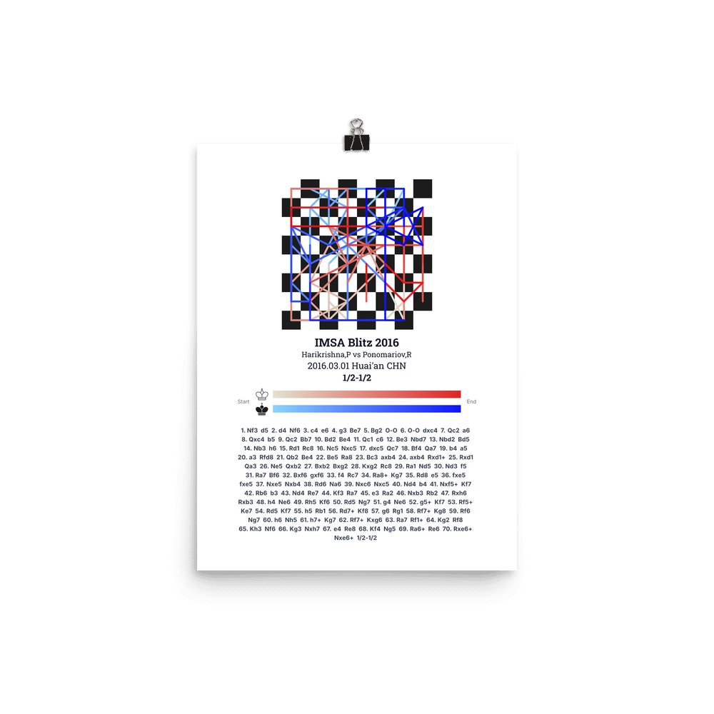 Museum-quality poster on thick, durable matte paper. A sharp, clean look for any chess visualisation.
