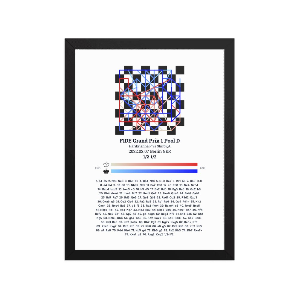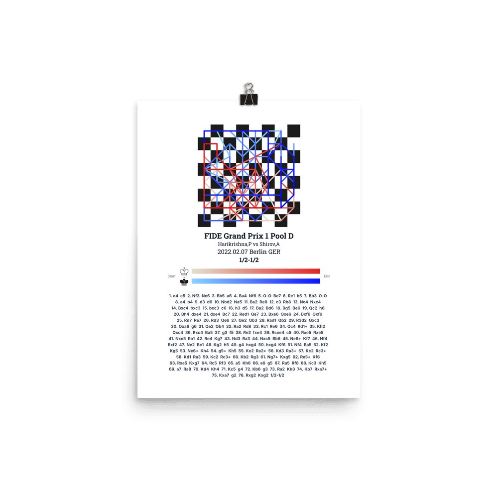 Museum-quality poster on thick, durable matte paper. A sharp, clean look for any chess visualisation.