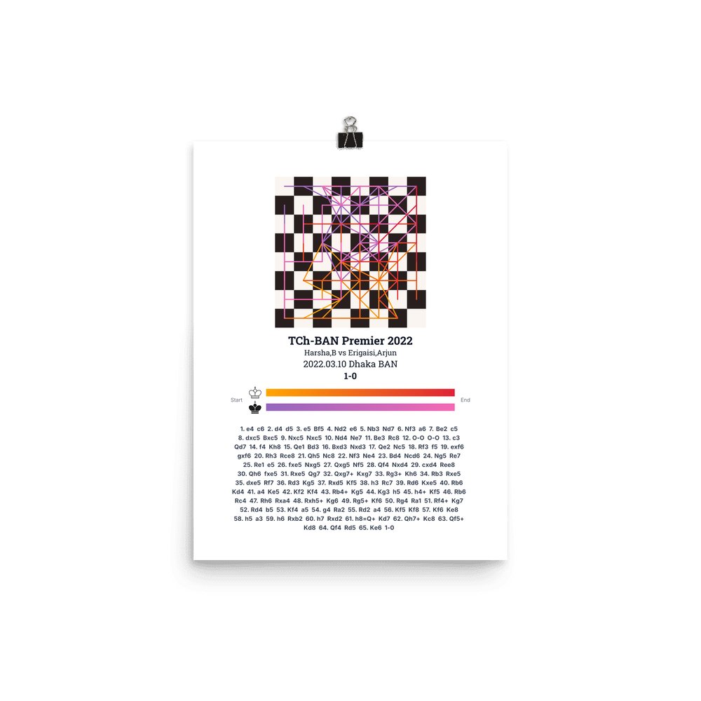 Museum-quality poster on thick, durable matte paper. A sharp, clean look for any chess visualisation.