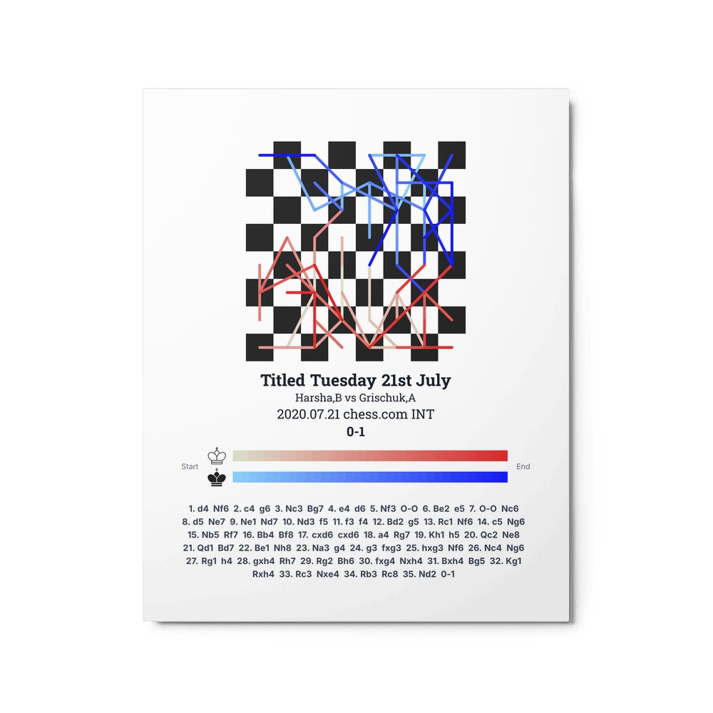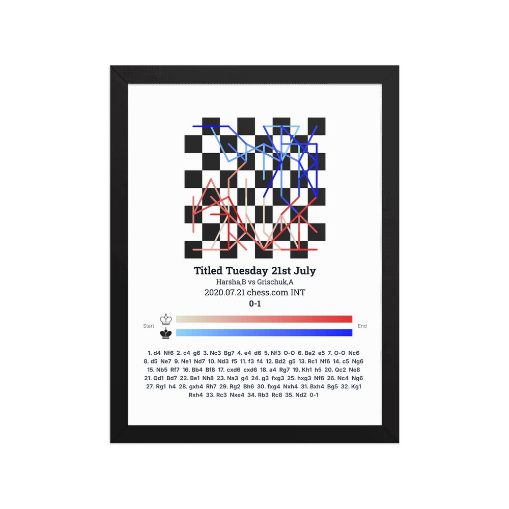 Museum-quality poster on thick, durable matte paper. A sharp, clean look for any chess visualisation.