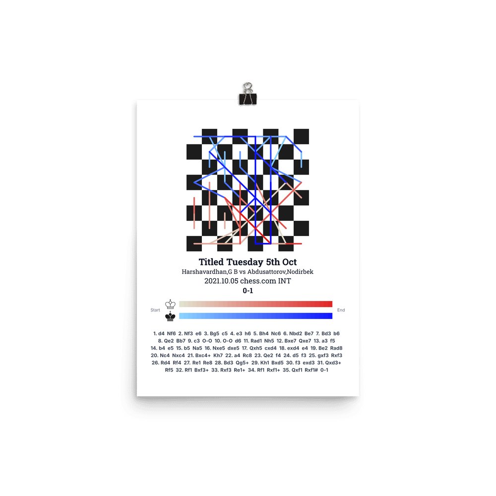 Museum-quality poster on thick, durable matte paper. A sharp, clean look for any chess visualisation.