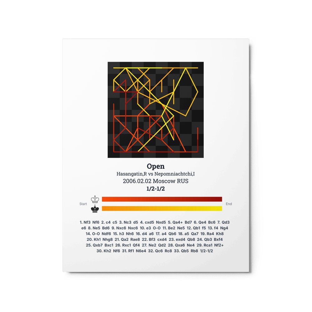 Museum-quality poster on thick, durable matte paper. A sharp, clean look for any chess visualisation.