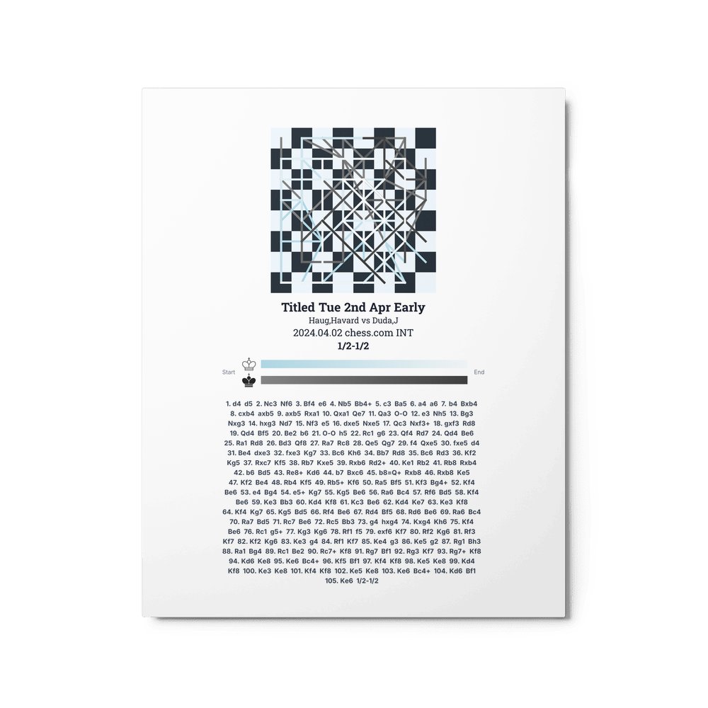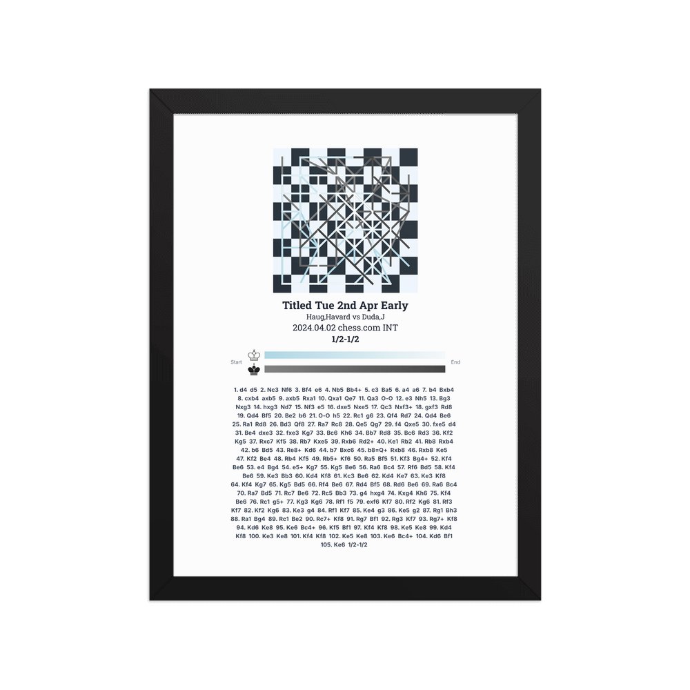 Museum-quality poster on thick, durable matte paper. A sharp, clean look for any chess visualisation.