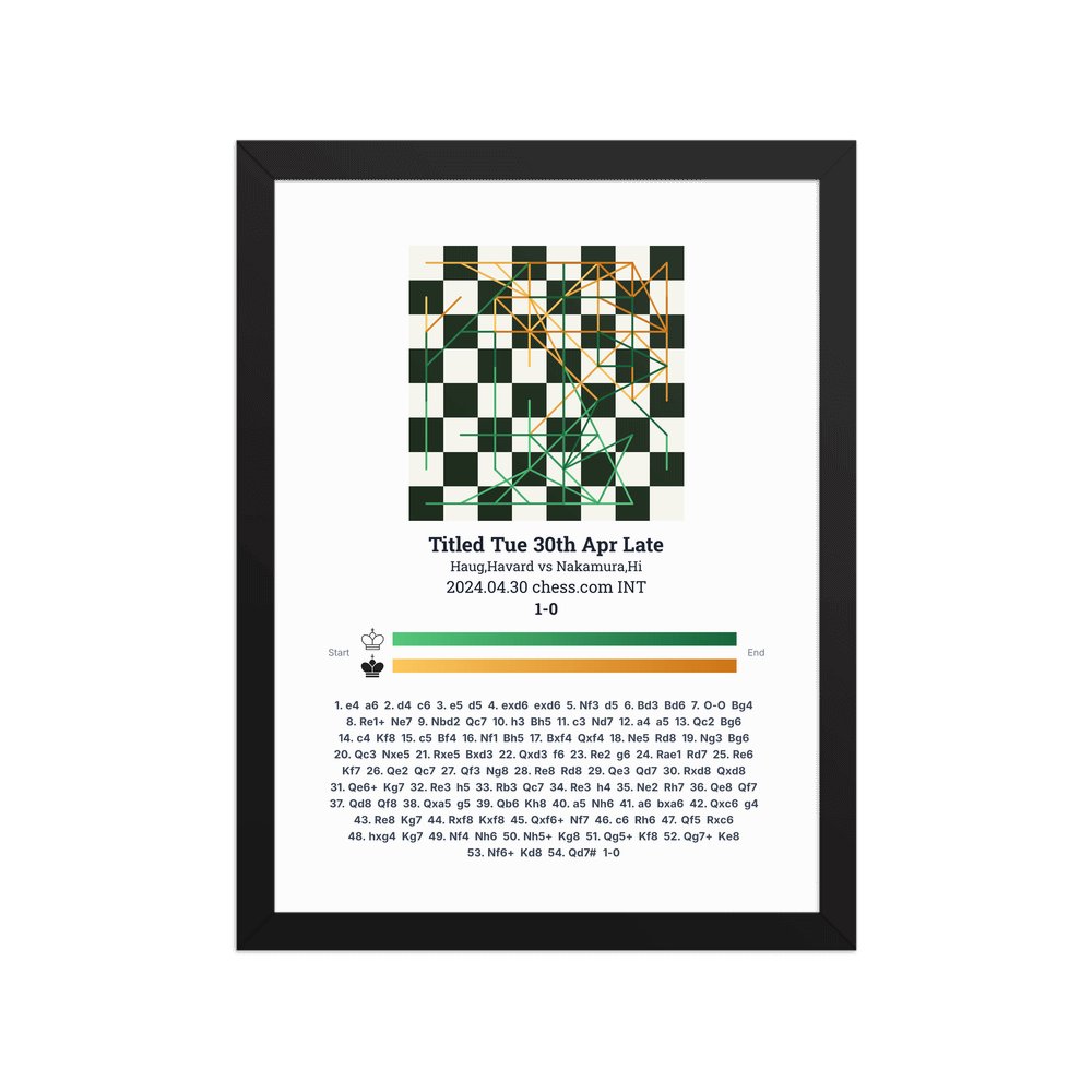 Museum-quality poster on thick, durable matte paper. A sharp, clean look for any chess visualisation.
