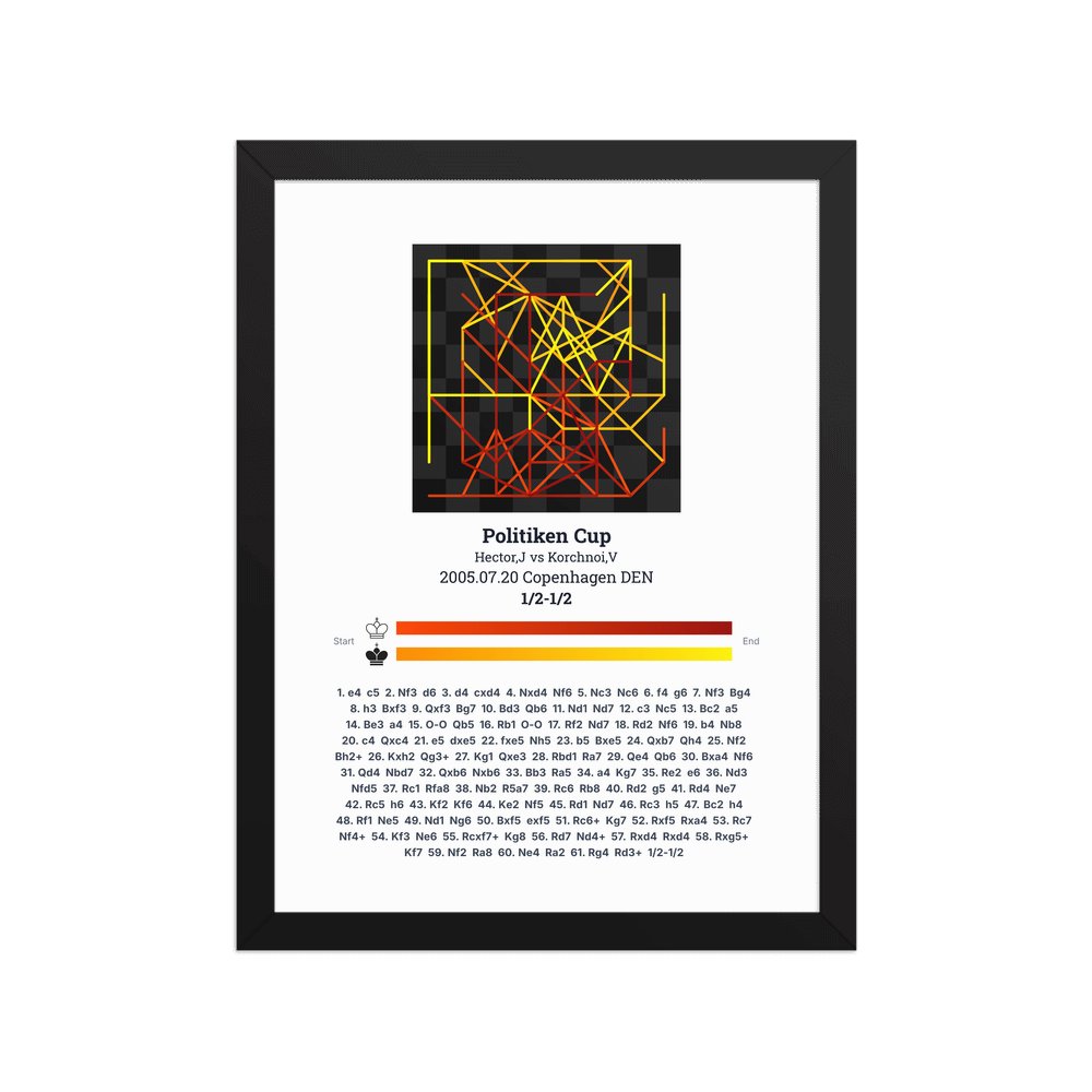 Museum-quality poster on thick, durable matte paper. A sharp, clean look for any chess visualisation.