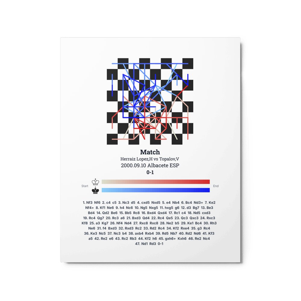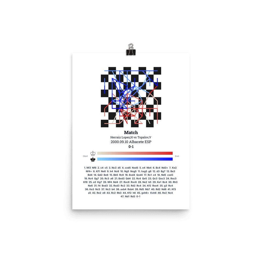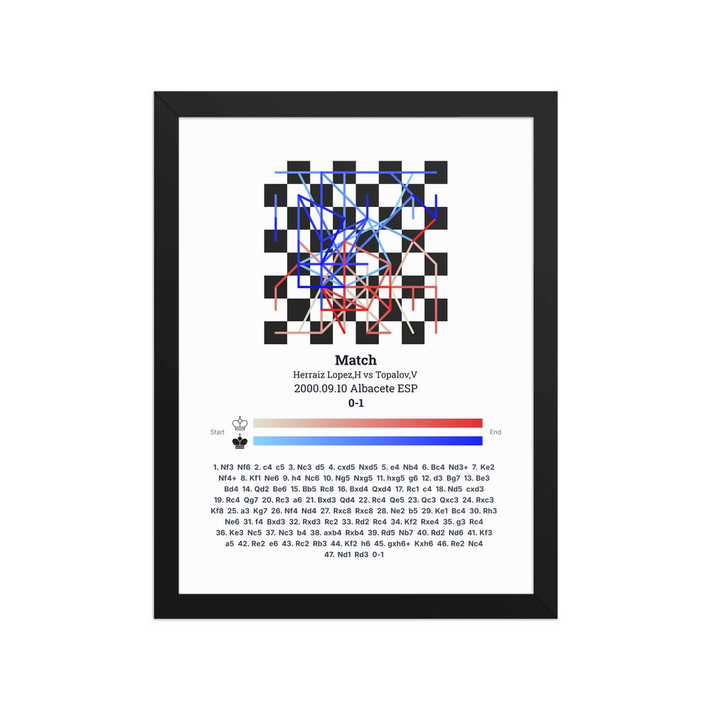 Museum-quality poster on thick, durable matte paper. A sharp, clean look for any chess visualisation.