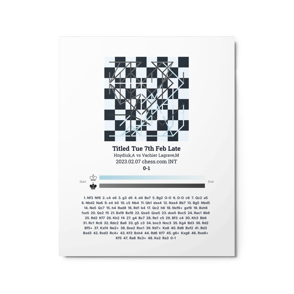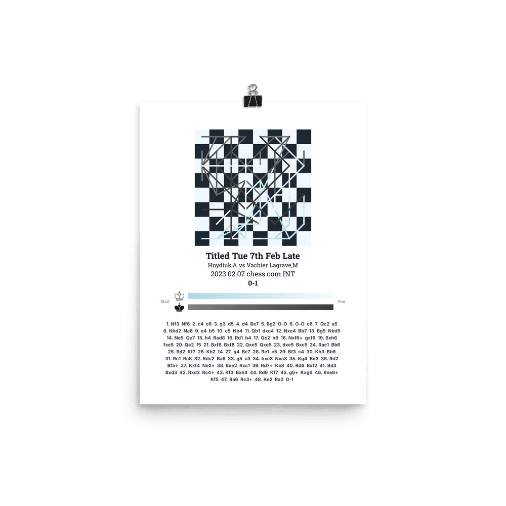 Museum-quality poster on thick, durable matte paper. A sharp, clean look for any chess visualisation.