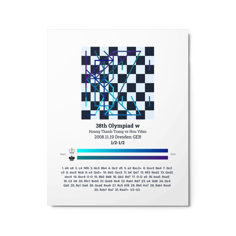 Museum-quality poster on thick, durable matte paper. A sharp, clean look for any chess visualisation.