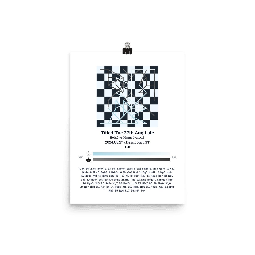 Museum-quality poster on thick, durable matte paper. A sharp, clean look for any chess visualisation.