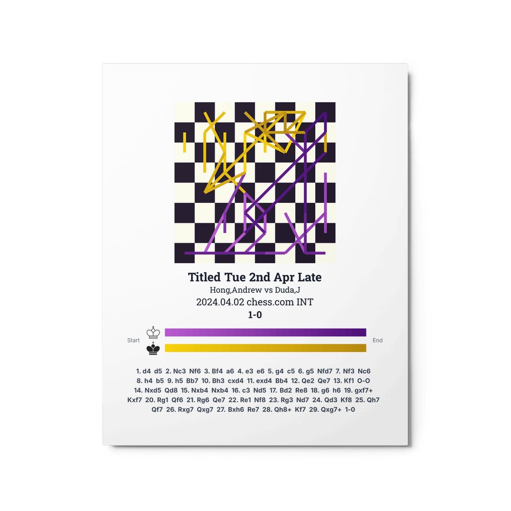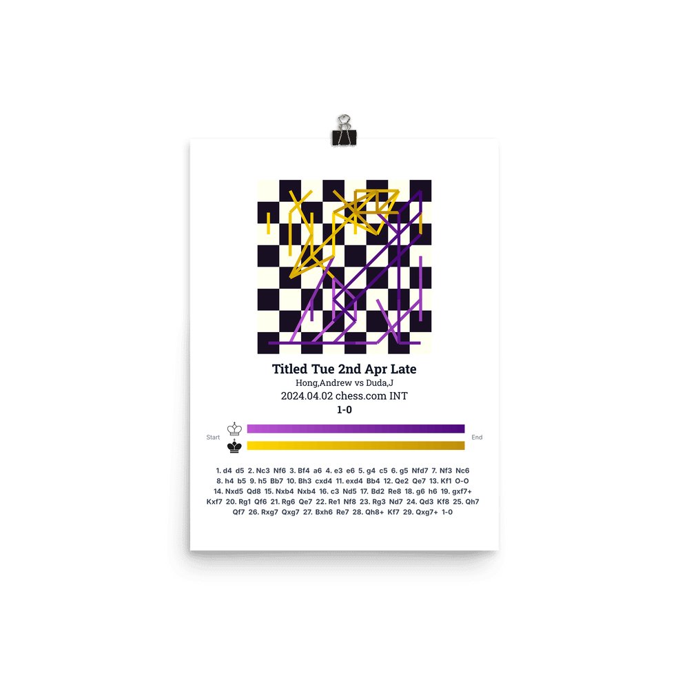 Museum-quality poster on thick, durable matte paper. A sharp, clean look for any chess visualisation.