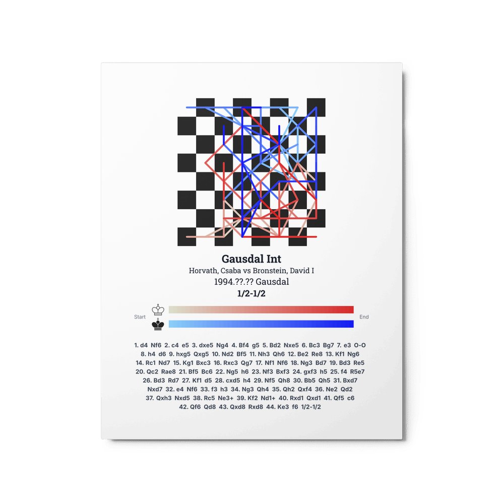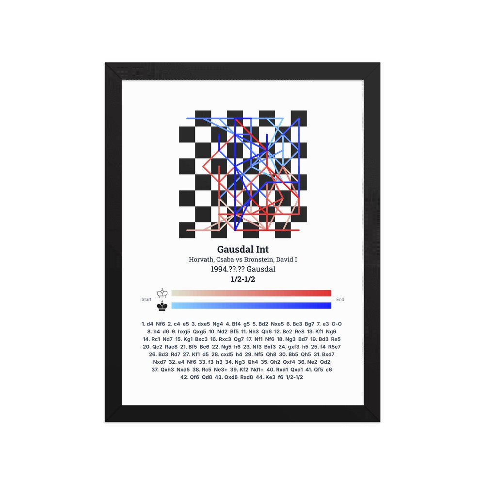 Museum-quality poster on thick, durable matte paper. A sharp, clean look for any chess visualisation.