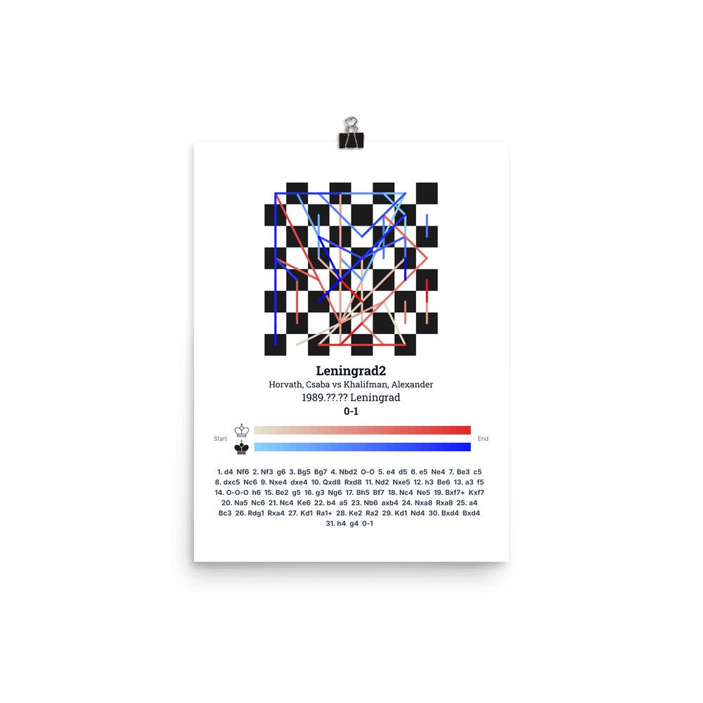 Museum-quality poster on thick, durable matte paper. A sharp, clean look for any chess visualisation.