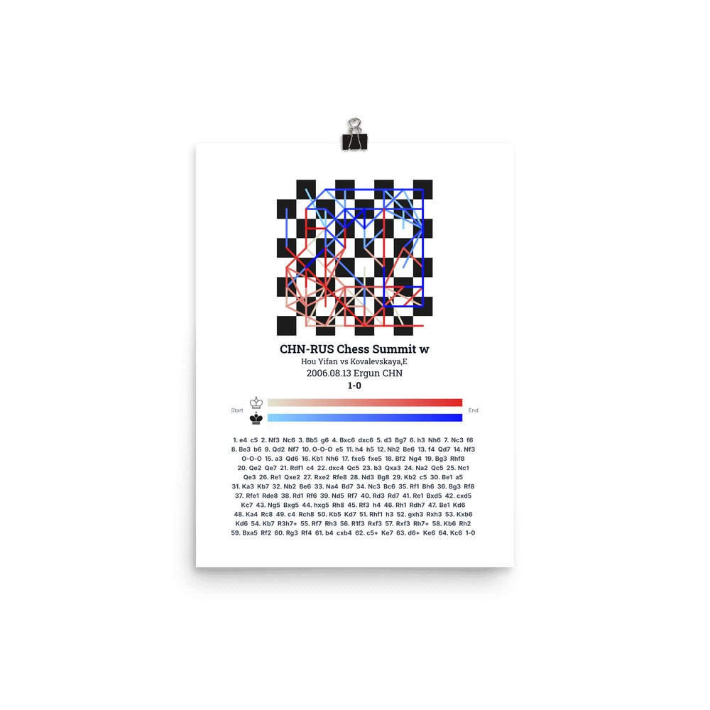 Museum-quality poster on thick, durable matte paper. A sharp, clean look for any chess visualisation.