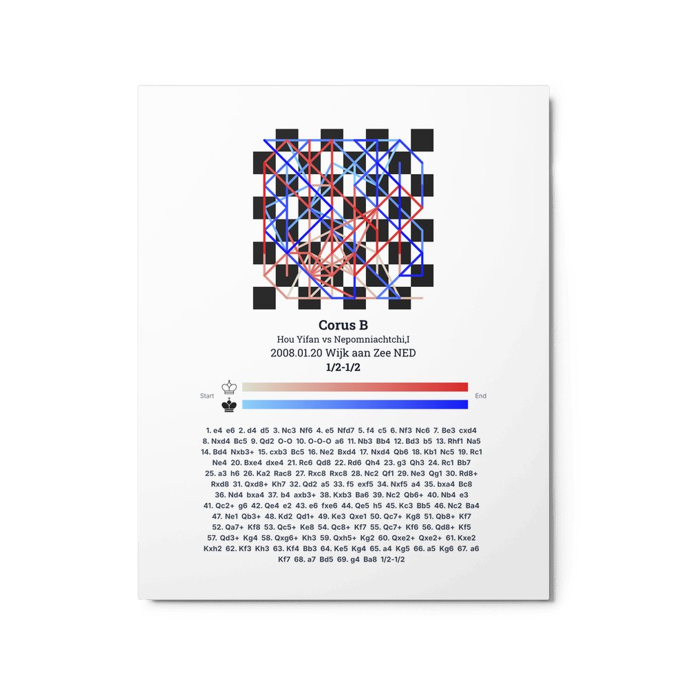 Museum-quality poster on thick, durable matte paper. A sharp, clean look for any chess visualisation.