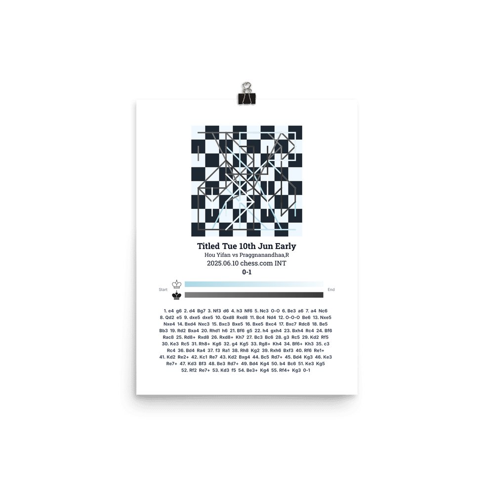 Museum-quality poster on thick, durable matte paper. A sharp, clean look for any chess visualisation.