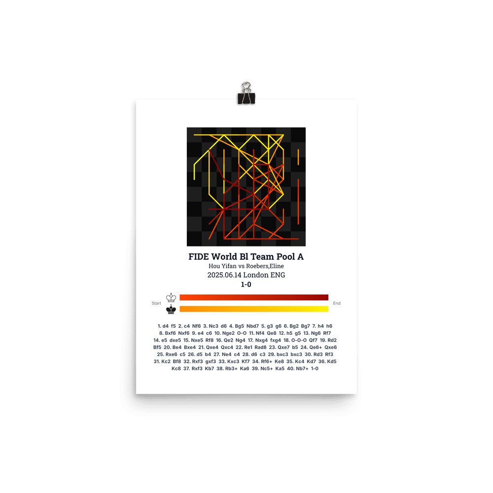 Museum-quality poster on thick, durable matte paper. A sharp, clean look for any chess visualisation.