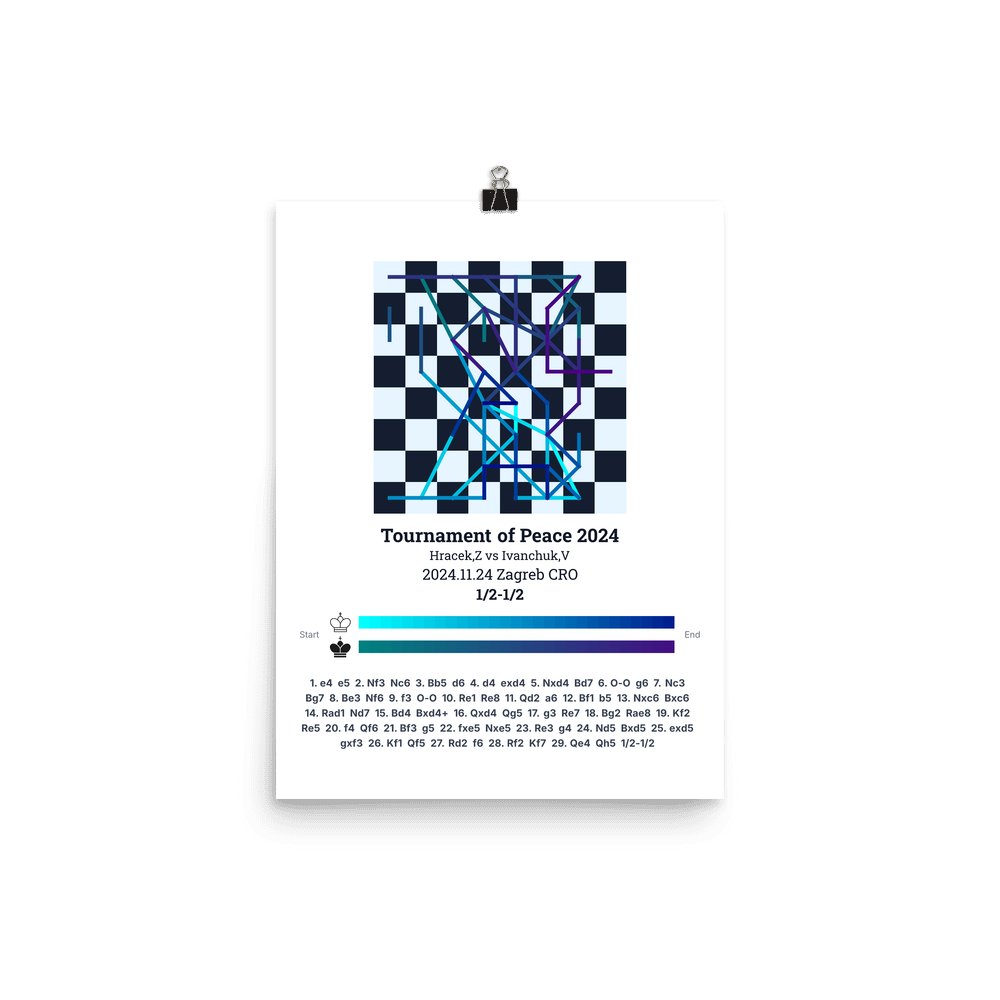 Museum-quality poster on thick, durable matte paper. A sharp, clean look for any chess visualisation.