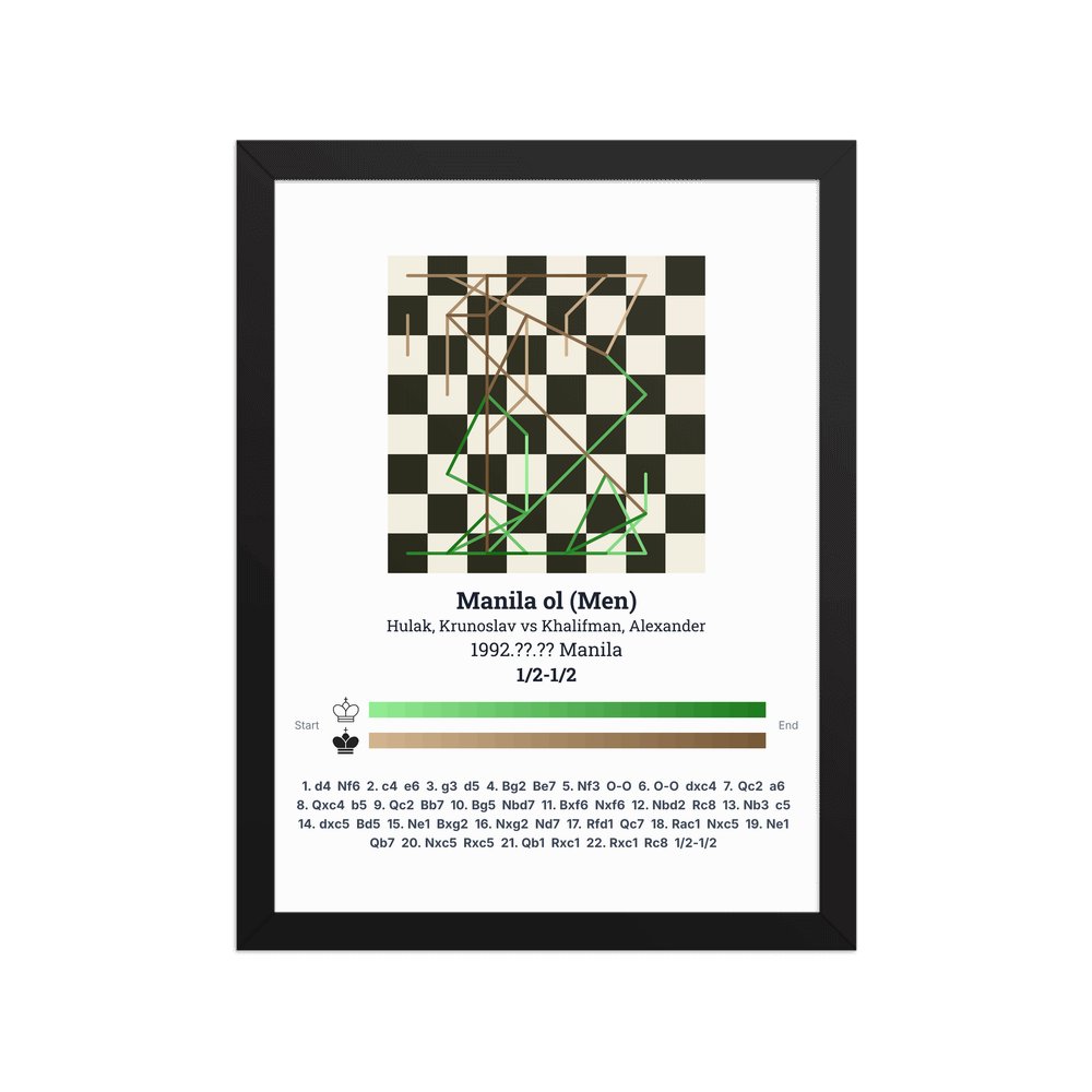 Museum-quality poster on thick, durable matte paper. A sharp, clean look for any chess visualisation.