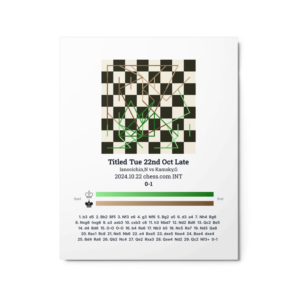 Museum-quality poster on thick, durable matte paper. A sharp, clean look for any chess visualisation.