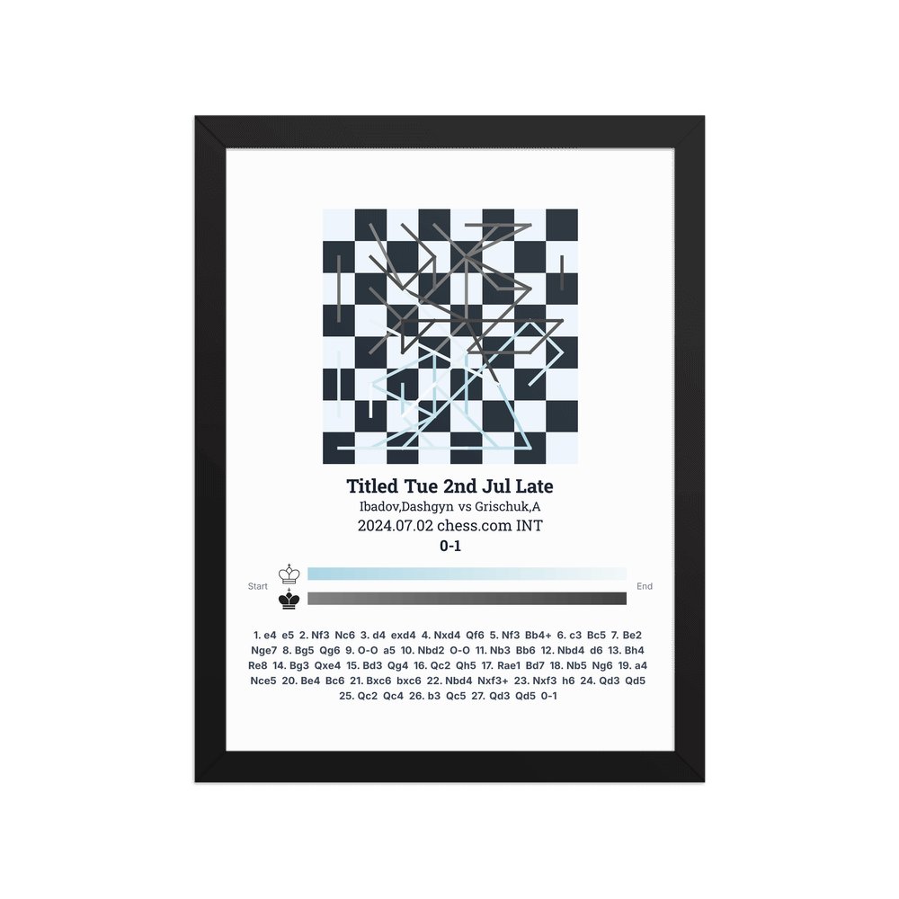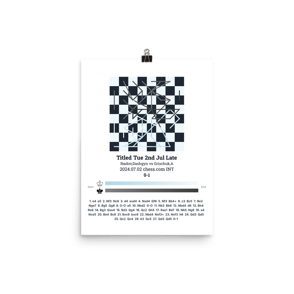 Museum-quality poster on thick, durable matte paper. A sharp, clean look for any chess visualisation.