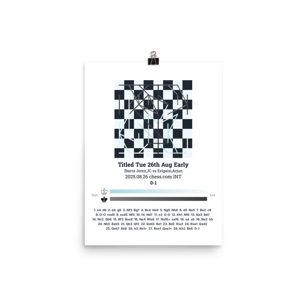 Museum-quality poster on thick, durable matte paper. A sharp, clean look for any chess visualisation.
