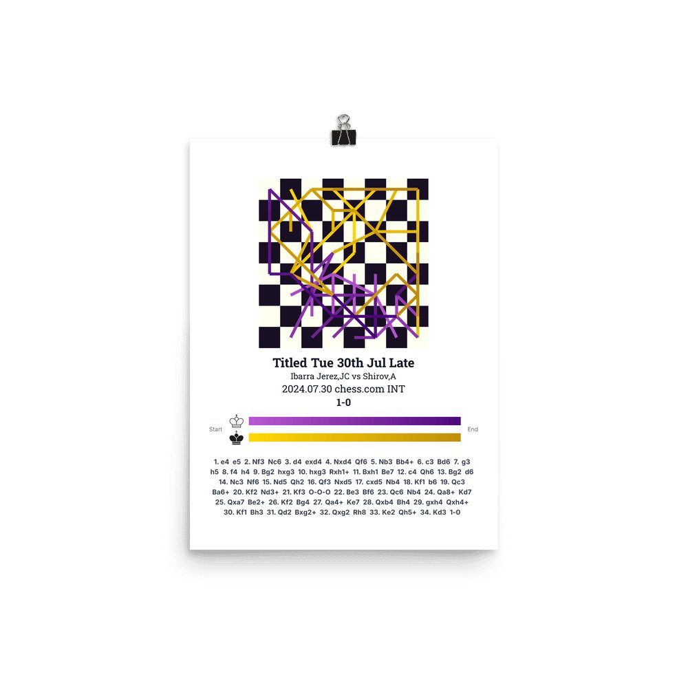Museum-quality poster on thick, durable matte paper. A sharp, clean look for any chess visualisation.
