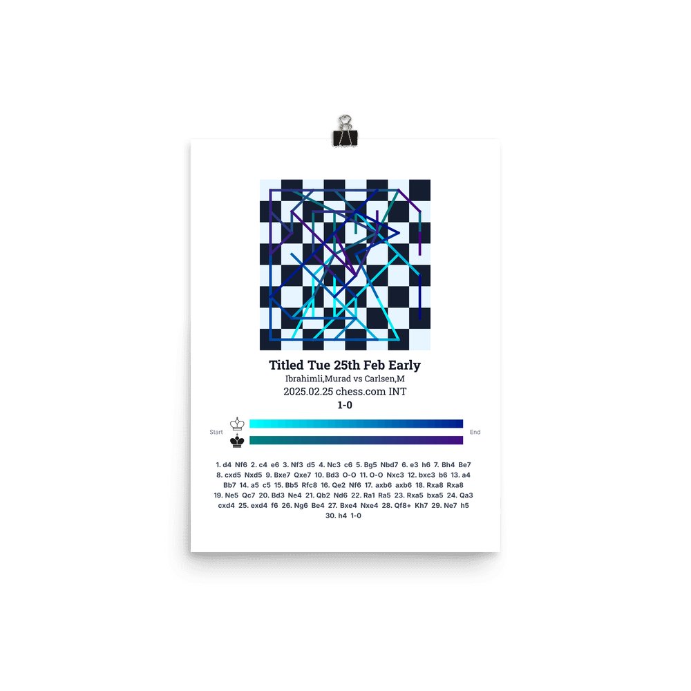Museum-quality poster on thick, durable matte paper. A sharp, clean look for any chess visualisation.