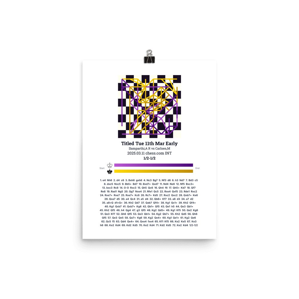 Museum-quality poster on thick, durable matte paper. A sharp, clean look for any chess visualisation.