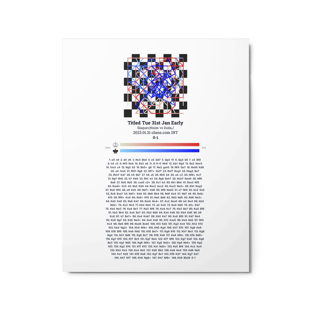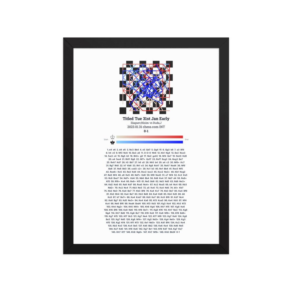 Museum-quality poster on thick, durable matte paper. A sharp, clean look for any chess visualisation.