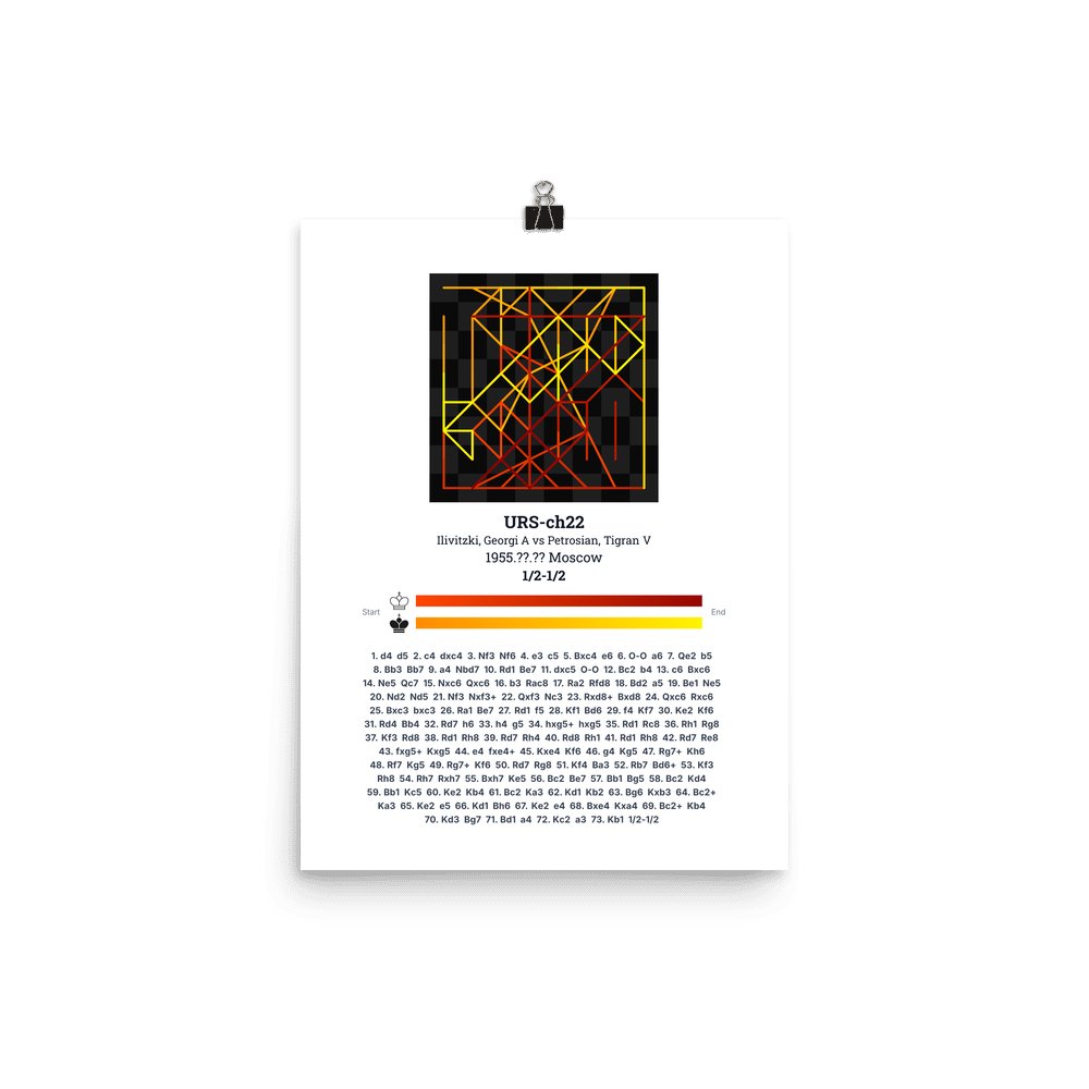 Museum-quality poster on thick, durable matte paper. A sharp, clean look for any chess visualisation.
