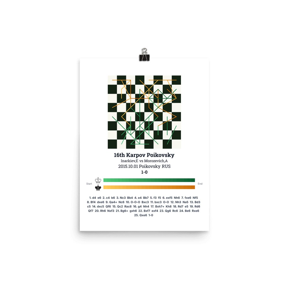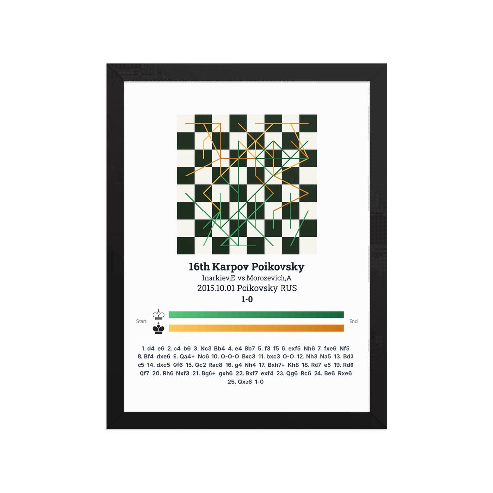 Museum-quality poster on thick, durable matte paper. A sharp, clean look for any chess visualisation.
