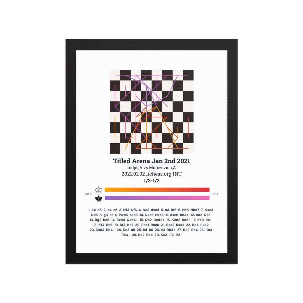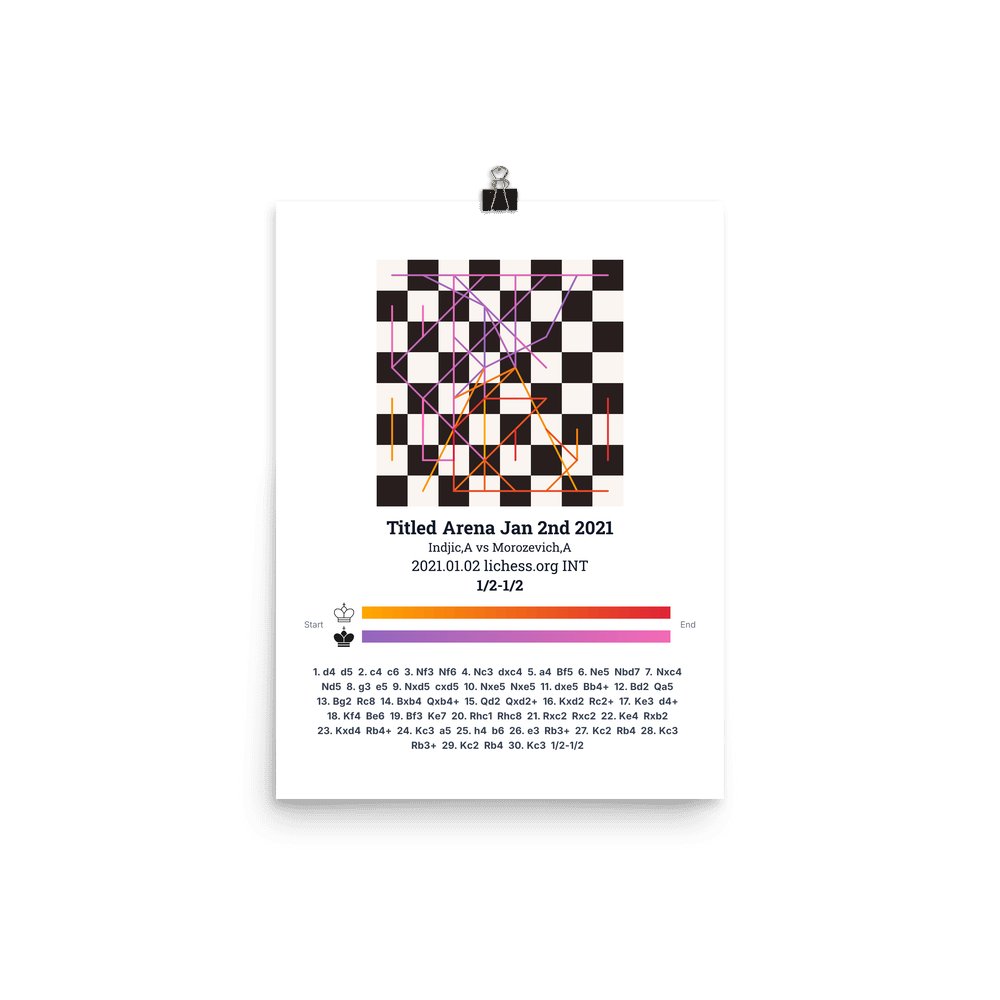 Museum-quality poster on thick, durable matte paper. A sharp, clean look for any chess visualisation.