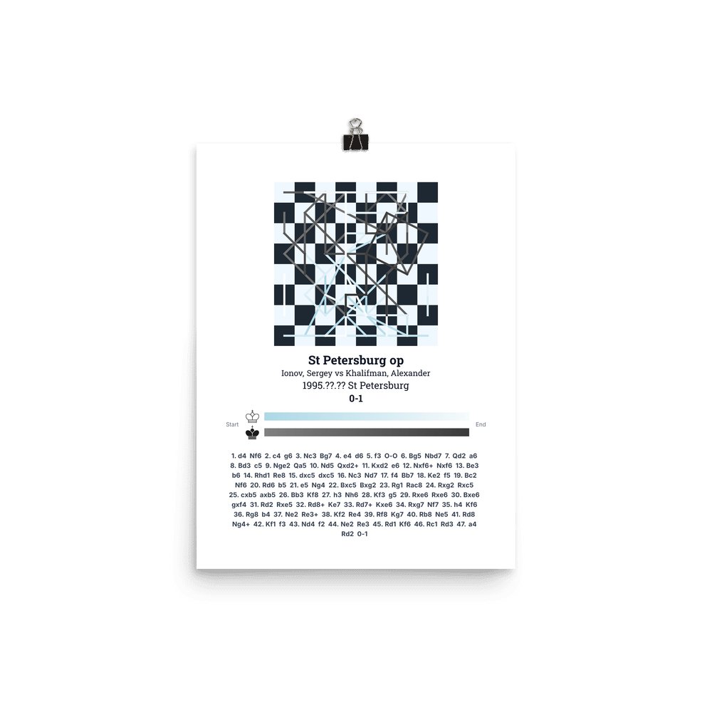 Museum-quality poster on thick, durable matte paper. A sharp, clean look for any chess visualisation.