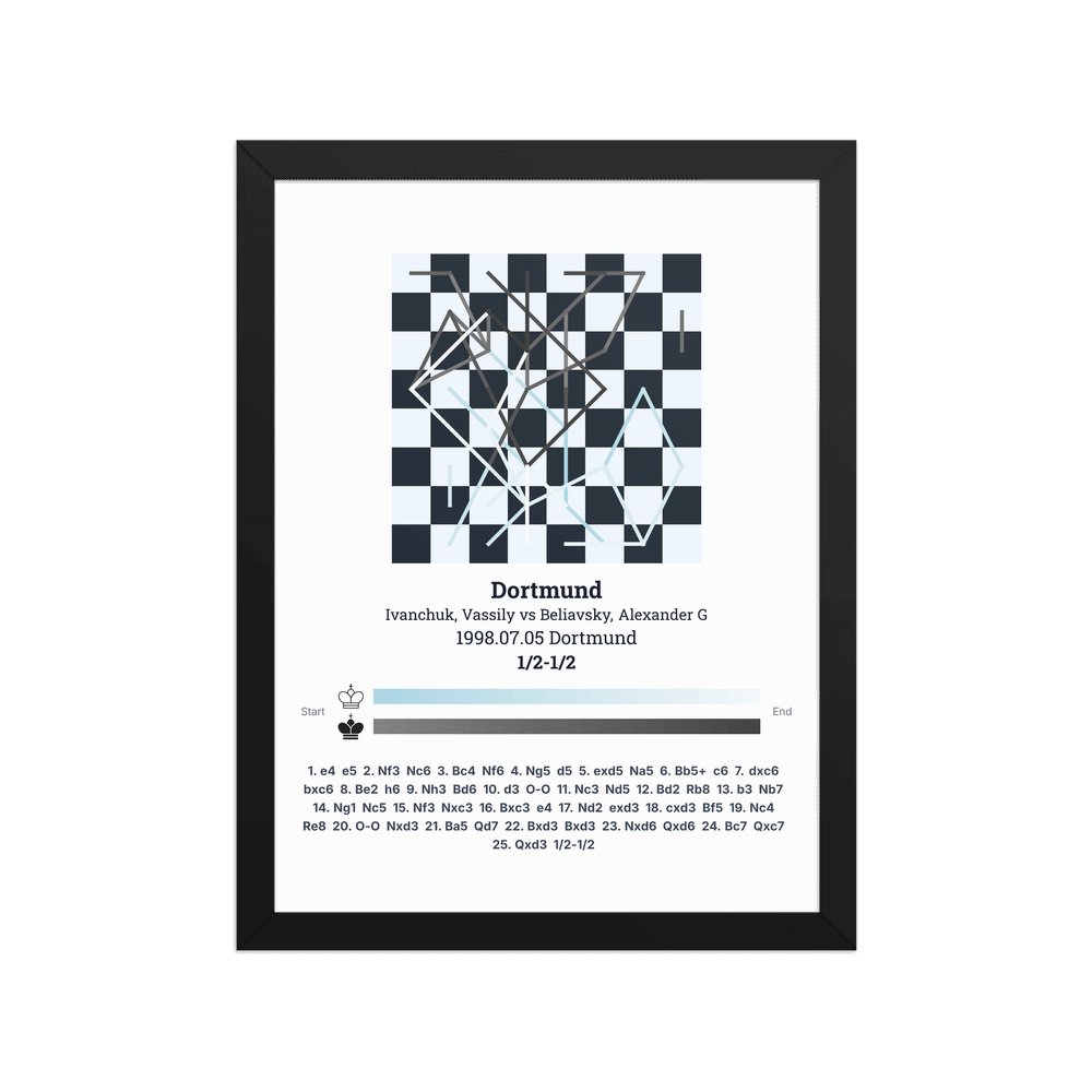 Museum-quality poster on thick, durable matte paper. A sharp, clean look for any chess visualisation.