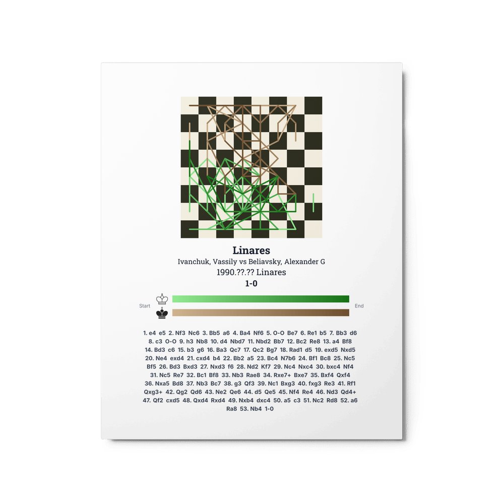 Museum-quality poster on thick, durable matte paper. A sharp, clean look for any chess visualisation.