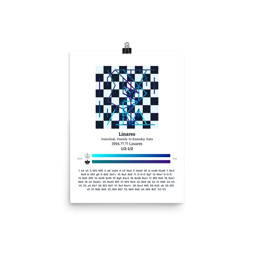 Museum-quality poster on thick, durable matte paper. A sharp, clean look for any chess visualisation.