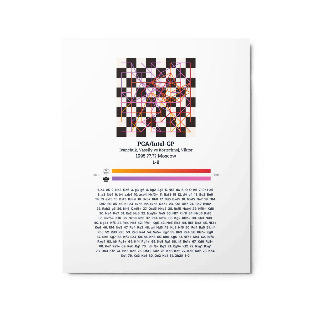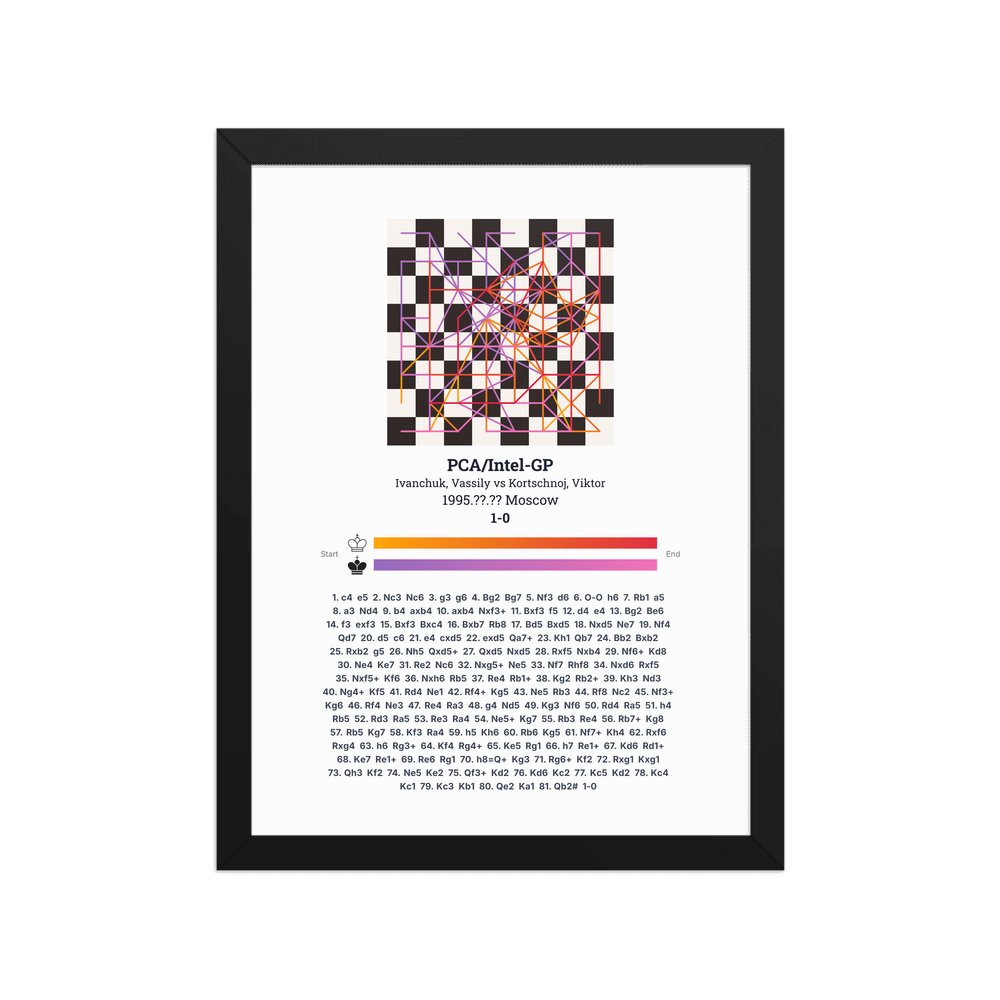 Museum-quality poster on thick, durable matte paper. A sharp, clean look for any chess visualisation.
