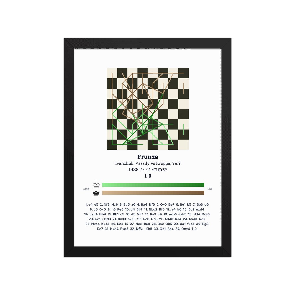 Museum-quality poster on thick, durable matte paper. A sharp, clean look for any chess visualisation.