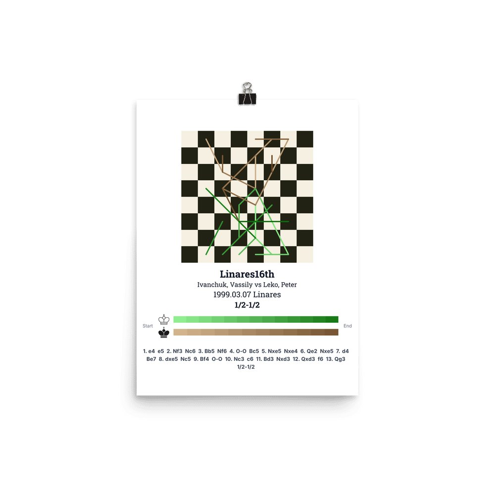 Museum-quality poster on thick, durable matte paper. A sharp, clean look for any chess visualisation.
