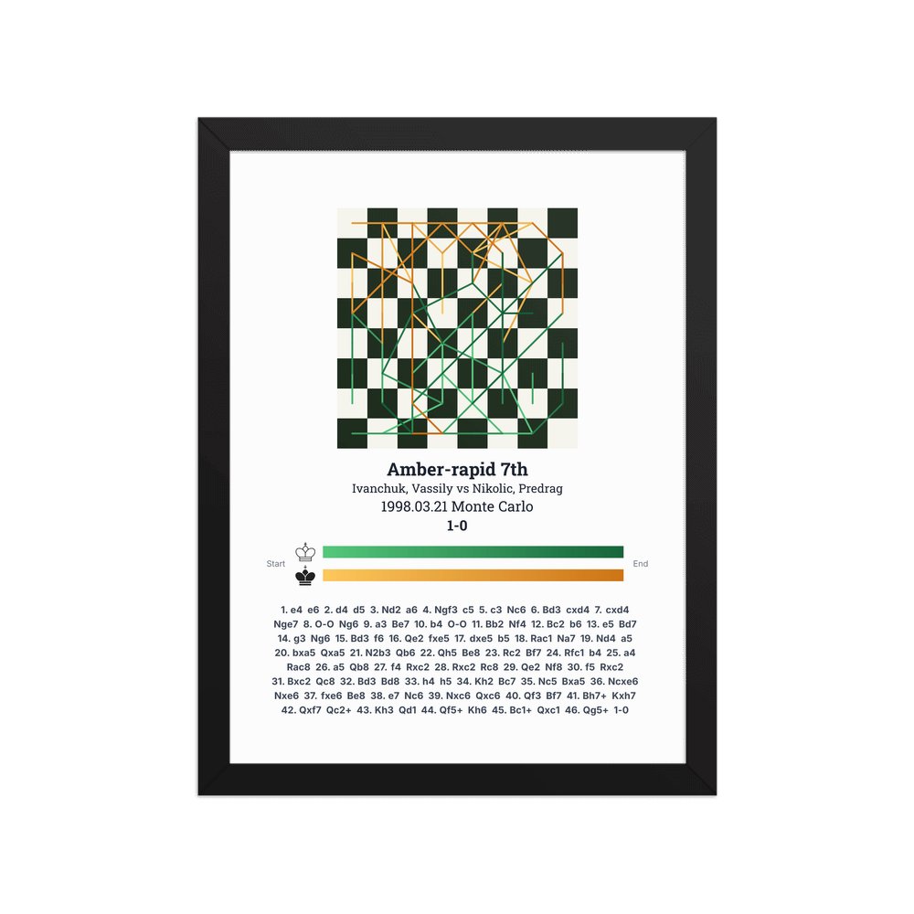 Museum-quality poster on thick, durable matte paper. A sharp, clean look for any chess visualisation.