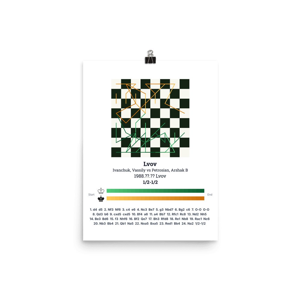 Museum-quality poster on thick, durable matte paper. A sharp, clean look for any chess visualisation.