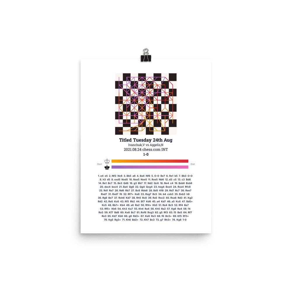 Museum-quality poster on thick, durable matte paper. A sharp, clean look for any chess visualisation.