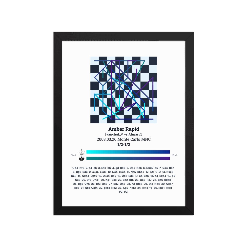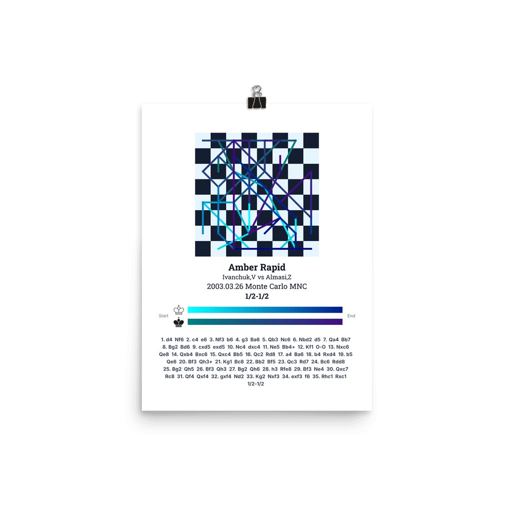 Museum-quality poster on thick, durable matte paper. A sharp, clean look for any chess visualisation.