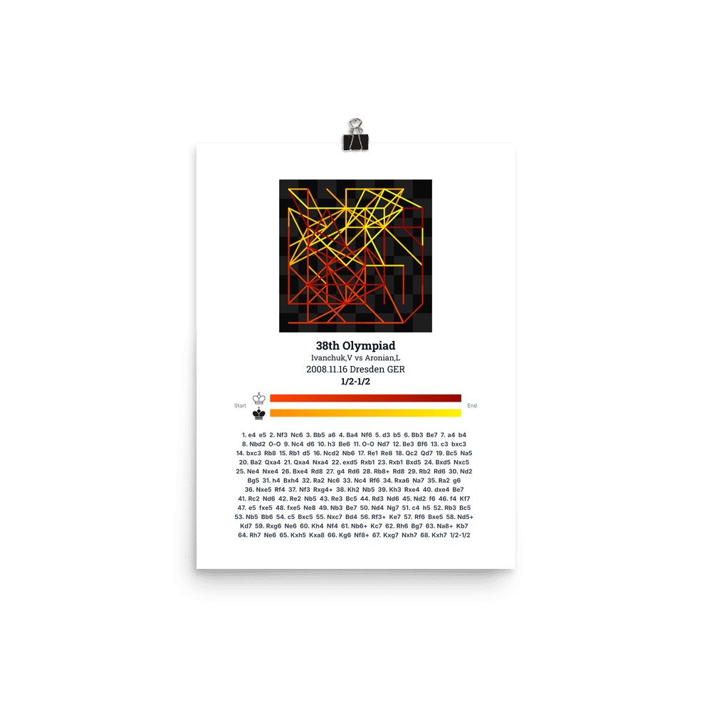 Museum-quality poster on thick, durable matte paper. A sharp, clean look for any chess visualisation.