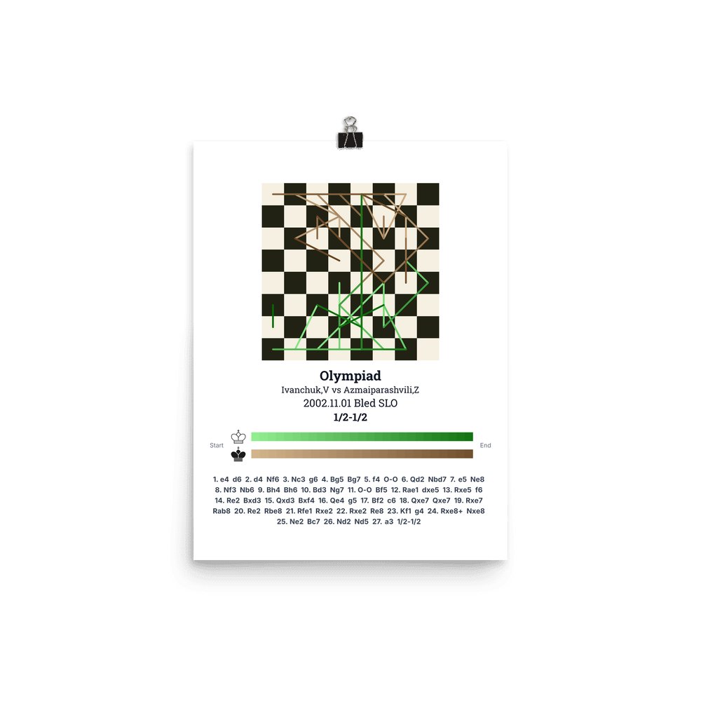 Museum-quality poster on thick, durable matte paper. A sharp, clean look for any chess visualisation.