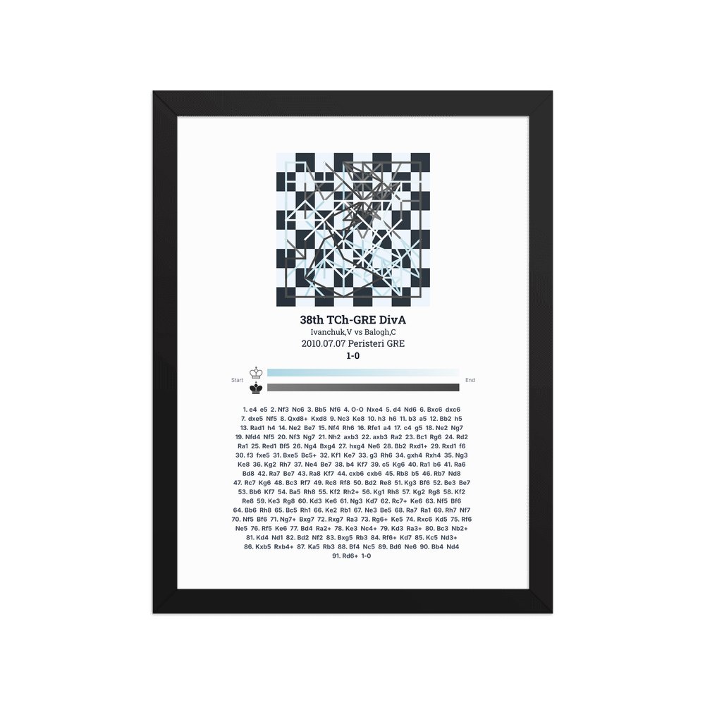 Museum-quality poster on thick, durable matte paper. A sharp, clean look for any chess visualisation.