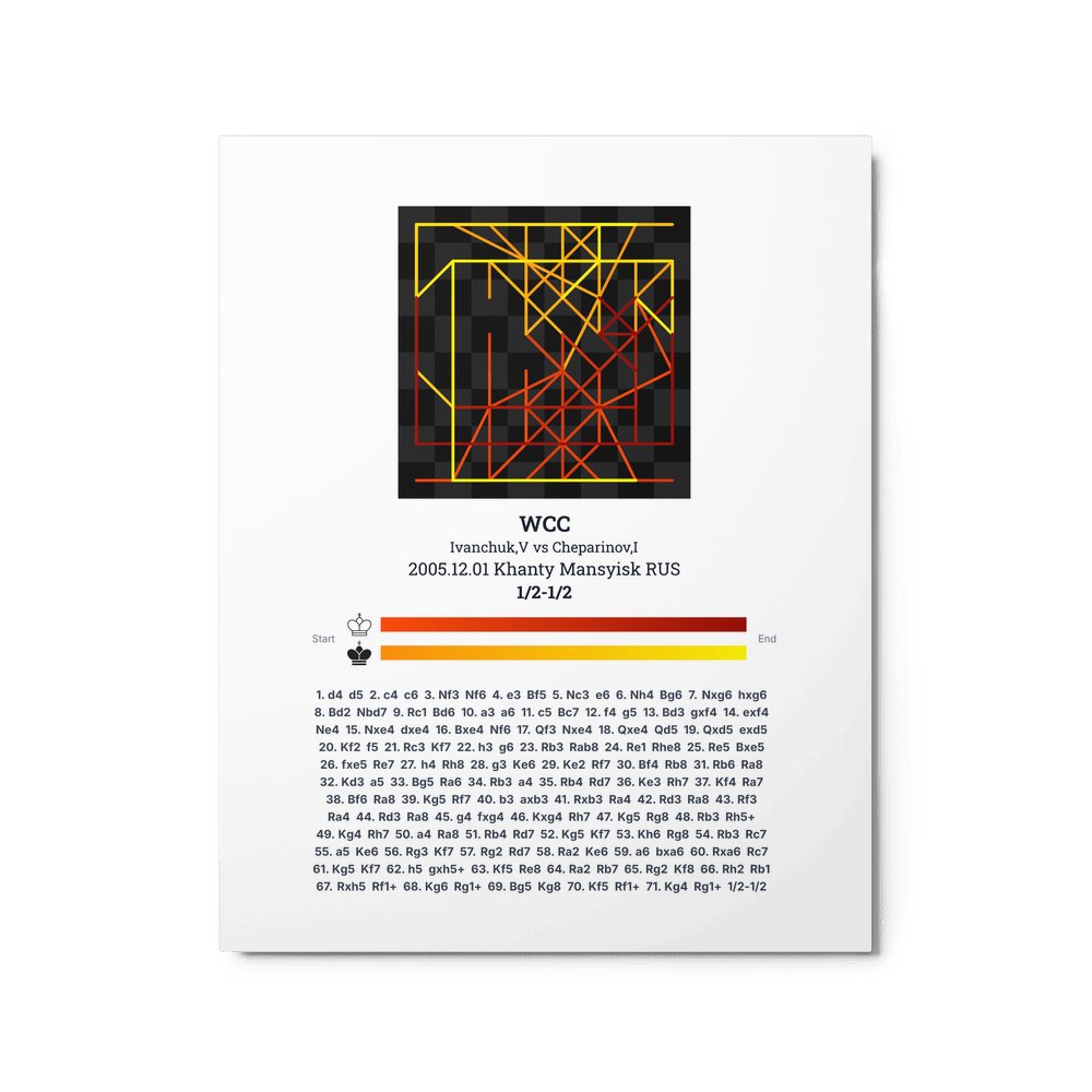 Museum-quality poster on thick, durable matte paper. A sharp, clean look for any chess visualisation.