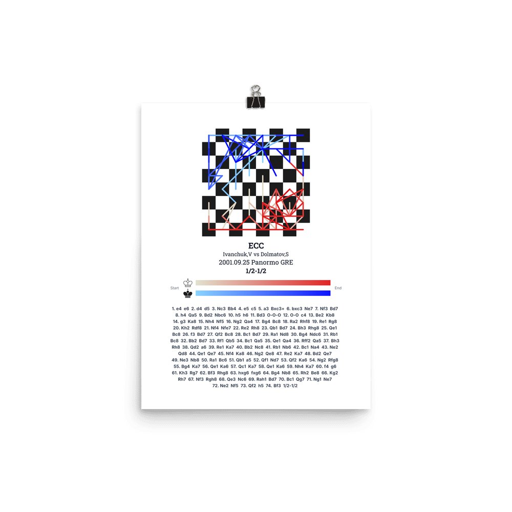 Museum-quality poster on thick, durable matte paper. A sharp, clean look for any chess visualisation.